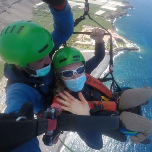 Wir fliegen über Vulkane, Lava und den Ozean in einem Tandem-Gleitschirm, mit Hilfe von Wind und Thermik, ohne Motorenlärm. Entdecken Sie Ihre Grenzen in völliger Sicherheit mit uns Experten, deren Leidenschaft das Fliegen ist!